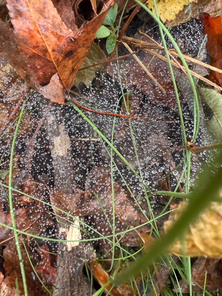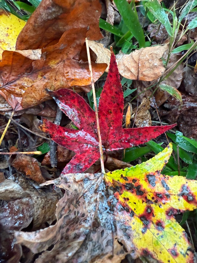 Wet fall leaves on forest floor